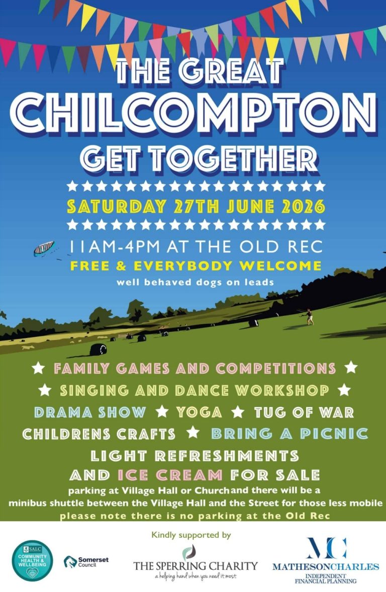 Parking if required is available at The Village Hall (Please refer to the poster for further details) and St. John’s Church Chilcompton, as there is no parking available by The Old Rec.